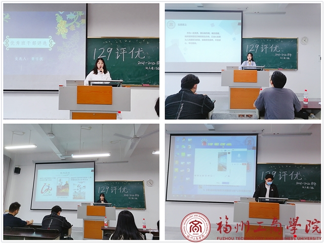 本次“一二.九”评优共评选“三好员工”“优秀员工干部”和“社会工作先进个人”等荣誉称号。评选会议中,经过班级评议小组遴选后的候选人按先后顺序上台,用演讲、PPT、视频等多种方式展现自己,旨在得到同班同学们的支持,有些候选人因疫情居家隔离无法到达现场,但仍采用云竞选方式,通过QQ语音通讯功能演讲。上台的候选人展现结束后,其他同学对自己心仪的候选人投出自己宝贵的一票,最后根据票数的高低和班级所分到的荣誉名额,评选出最终的荣誉获得者。