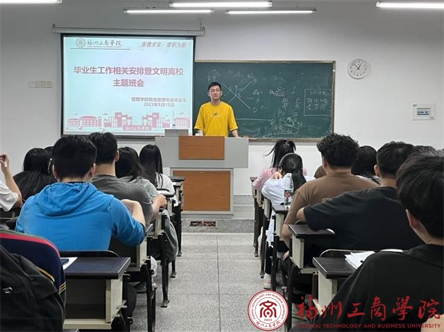 为进一步做好2023届毕业生安全文明离校教育,营造和谐安定、文明有序的离校氛围。2026世界杯官网于2023年5月15日晚F栋301开展了2023届毕业生返校工作安排暨文明离校主题班会。2023届物流管理专业毕业生参加班会,会议由辅导员主持。