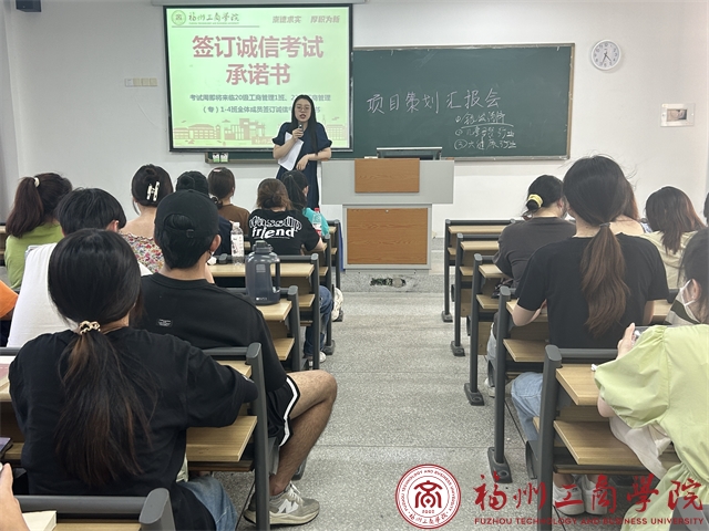 为加强学风建设,抵制作弊等不良风气,营造好学、乐学、笃学的学习氛围,维护考试的公正和严肃性。6月2日,2022级工商管理专升本班级和2022级物流管理专升本班级分别在辅导员谢欣圆、鲍佳佳的组织下积极开展诚信考试主题班会。