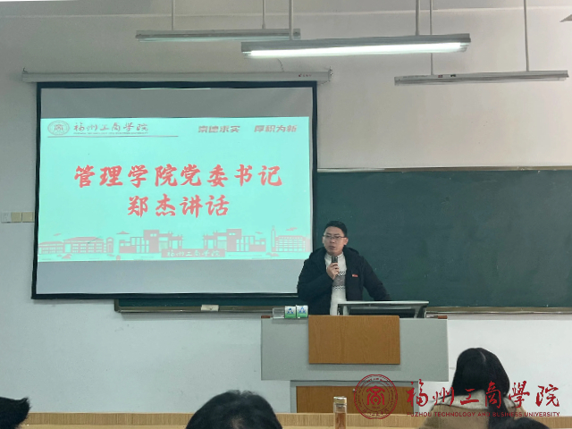 最后,党委书记郑杰上台讲话,对受表彰的同学表示祝贺,并对全体同学提出期望和要求,以亲身经历鼓励大家积极投身社会实践,在实践中锻炼自己,为社会发展贡献力量。