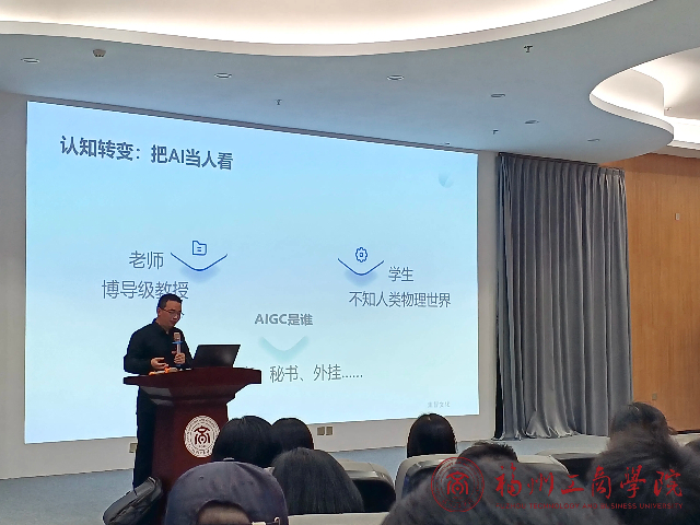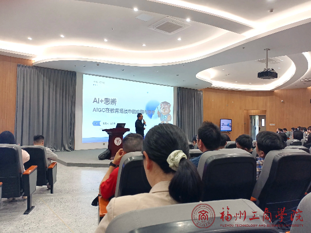 当生成式人工智能重塑世界的边界,当多模态技术模糊虚拟与现实的鸿沟,谁将成为驾驭这场智能革命的先锋?世界杯2026官方网站以“AIGC赋能教育场景”为号角,4月15日下午,于创新楼三楼报告厅召开“AI+思辨:AIGC在教育场景中的应用与思考”讲座。深入研讨并部署了AI融合课程建设措施。会议由陈畅老师主持,全员教师参加会议。
