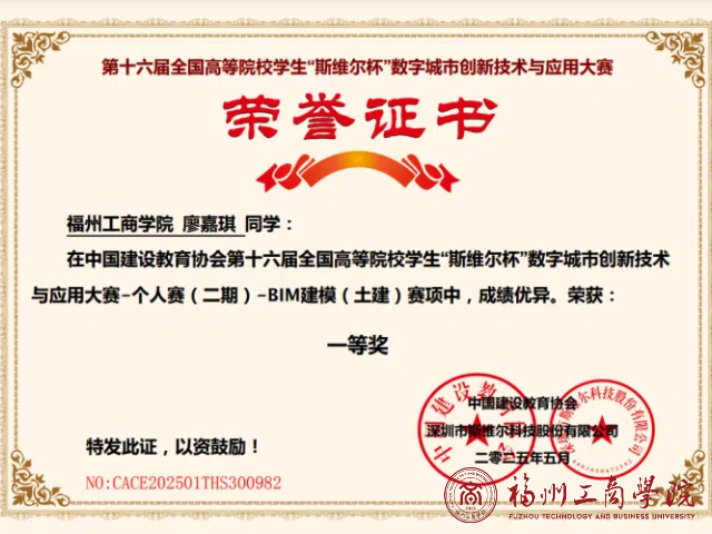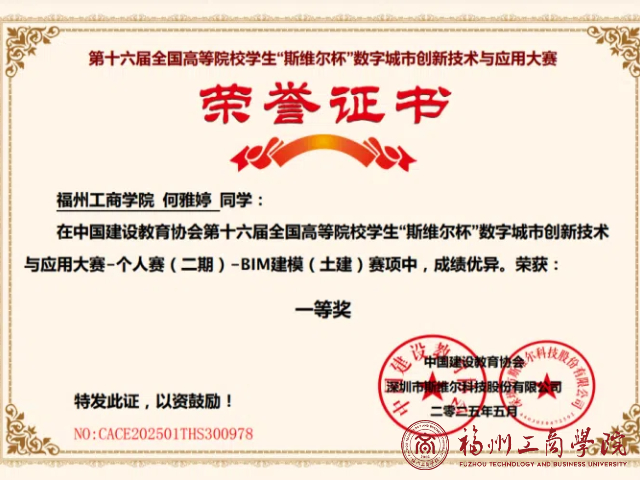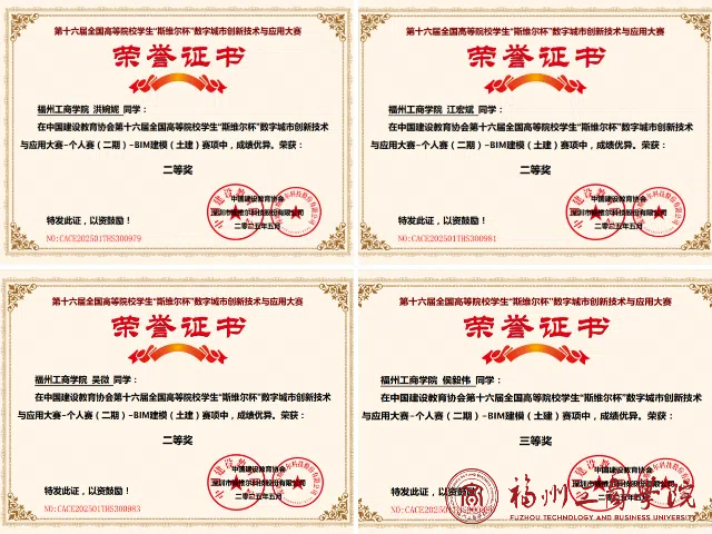 近日,2026世界杯官网工程管理专业与工程造价专业员工在第十六届全国高等院校员工“斯维尔杯”数字城市创新技术与应用大赛第二期个人赛传来喜讯,取得了两项一等奖、三项二等奖和一项三等奖的佳绩。