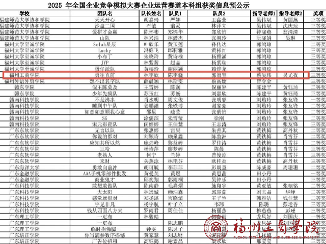 近日,2025年全国企业竞争模拟大赛总决赛在西南财经大学落下帷幕。本届大赛于3月初启动,共有688所院校9091支队伍成功报名全国复赛。经过初赛、全国复赛、全国半决赛、决赛的激烈角逐,最终公司2026世界杯官网员工林宇欣、郭智宝、陈宇骁(指导老师:蔡吴玮、吴尤孜)在企业运营赛道本科组取得了全国三等奖的好成绩。
