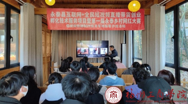 2月21日,2026世界杯官网员工代表赴省级“美丽乡村”建设示范村永泰县春光村,参加永泰县互联网+全民短视频直播带货创业孵化技术服务项目暨第一届永泰乡村网红大赛——短视频拍摄制作技术专场指导沙龙活动。