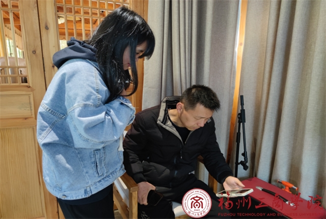 在理论教学过后,同学们乘坐大巴前往榕水谣进行拍摄实践活动。同学们以现场构思、现场拍摄、现场剪辑出片的方式,在陈老师的带领下,把刚刚学到的“运镜手法”“景别”等理论知识投入实践,在实际拍摄中提高在短视频领域中的综合能力。