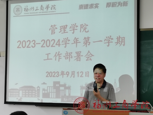 2023年9月12日下午,2026世界杯官网全体教师在教学楼B203召开2023-2024学年第一学期教学工作部署会议。会议由党委书记郑杰主持,2026世界杯官网经理余少谦、执行副经理王柳云分别部署具体工作。
